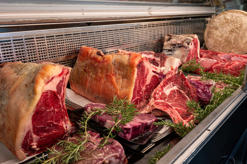 All'interno del ristorante, una cella espositiva accoglie una selezione dei migliori tagli di carne, conservati e presentati con cura. Un dettaglio che racconta l’attenzione per la qualità e offre agli ospiti uno sguardo trasparente su ciò che portiamo in tavola.